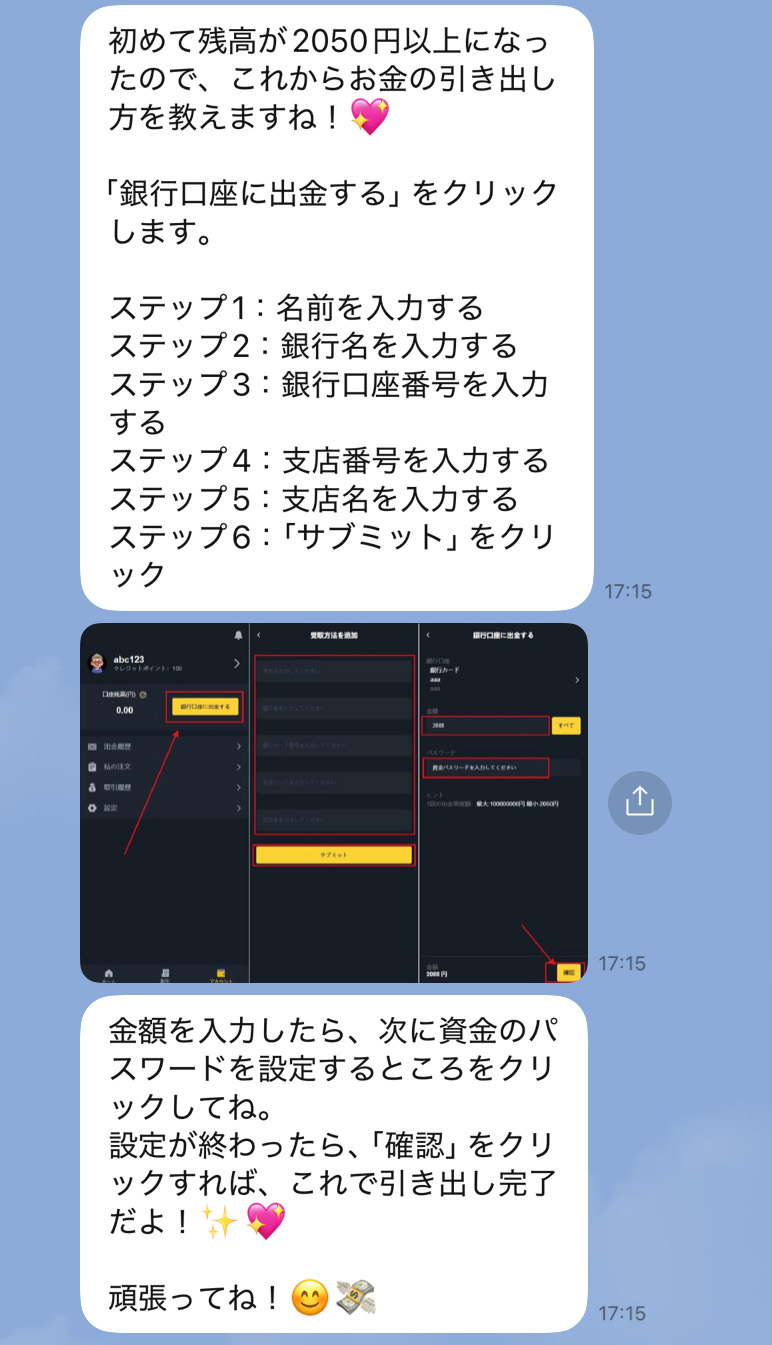 あとは、「儲かる儲かる」と思わせておいて、専用の作業管理ページ、もしくは怪しいアプリをインストールさせて “いいね仕事” を本格化。