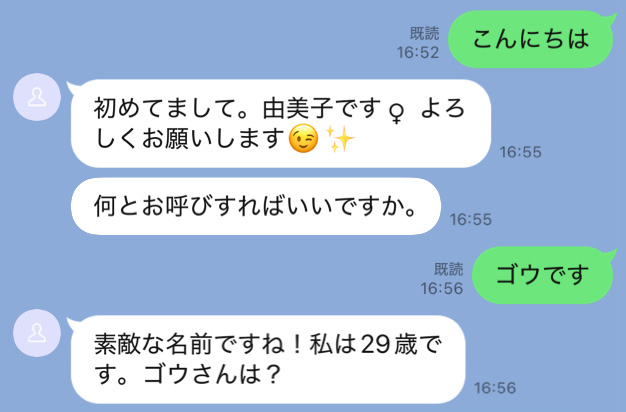 インスタで声をかけられ、LINEに誘導してきた女は「由美子(ゆみこ)」と名乗った。年齢は29歳で千代田区在住。職業は、ヨガスタジオを経営している実業家。