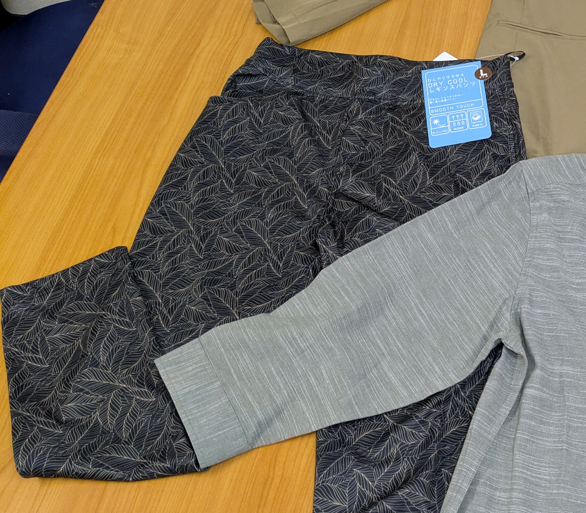 目玉商品は、Tシャツと半パンのセットアップだ。スラックスがあるのに、半パンを購入したのにはわけがある。実はTシャツだけを買ったつもりが、同じハンガーに半パンがついていることに会計の時に気づいたのだ。