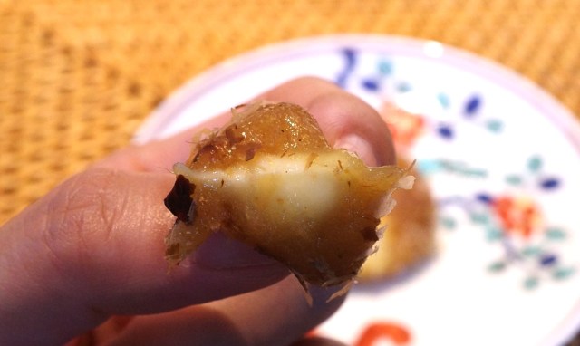 食べてみると、なるほどこれは旨い。まず餅は餅でも、ただの餅ではない。粉末醤油が練りこまれているらしく、しっかり醤油の味がして、優しいみたらし団子のような雰囲気だ。
