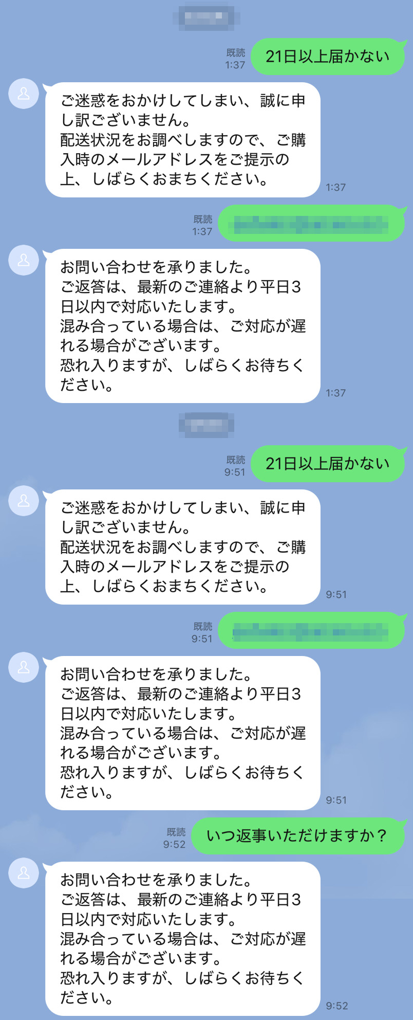 その人数がどのくらいなのかは不明だが、もしも私がLINEの問い合わせではなく、直接電話で問い合わせるという強行手段をとらなかったら、私を含め、他の「お客様たち」は、一体どうなっていたのだろうか。