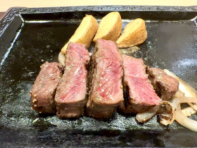 肉はレアに近い状態で届いた。100gだとちょっと少ないかなと思ったが、見た目には物足りなさはない。ライスなどは付かない単品価格なので、もし主食をセットにすれば会計は1000円台前半になるだろう。