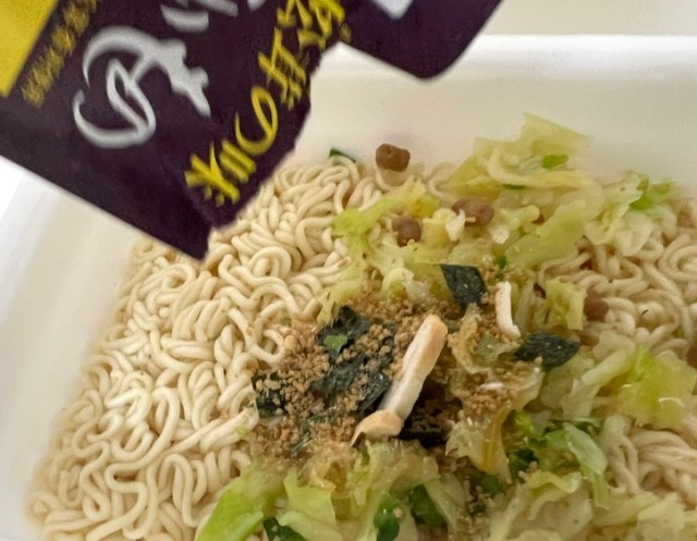 ちなみに作り方は通常のペヤングと全く同じ。かやくを入れて、お湯を注いで3分待つ。