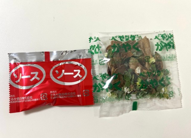 次に原材料だが、使用している麺は「油揚げめん(小麦粉(国内製造))」。表記を見る限り、これは他のペヤング製品と同じだ。