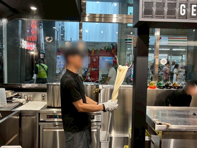 この日は猛暑日だったが、店頭の製造スペースではスタッフさんが汗を光らせながら頑張っていた。自然と観客も集まり「頑張れー」と声がかかる。