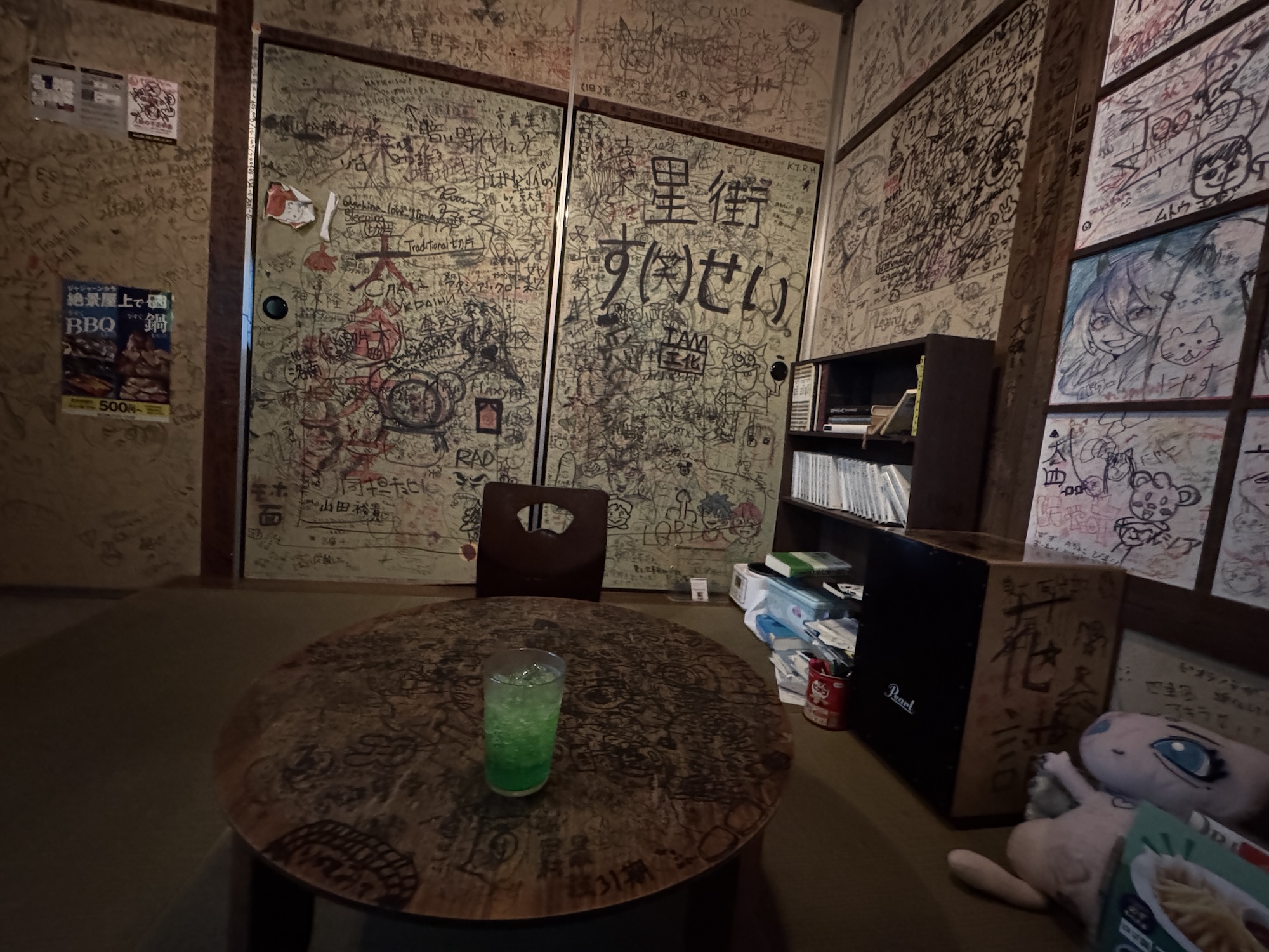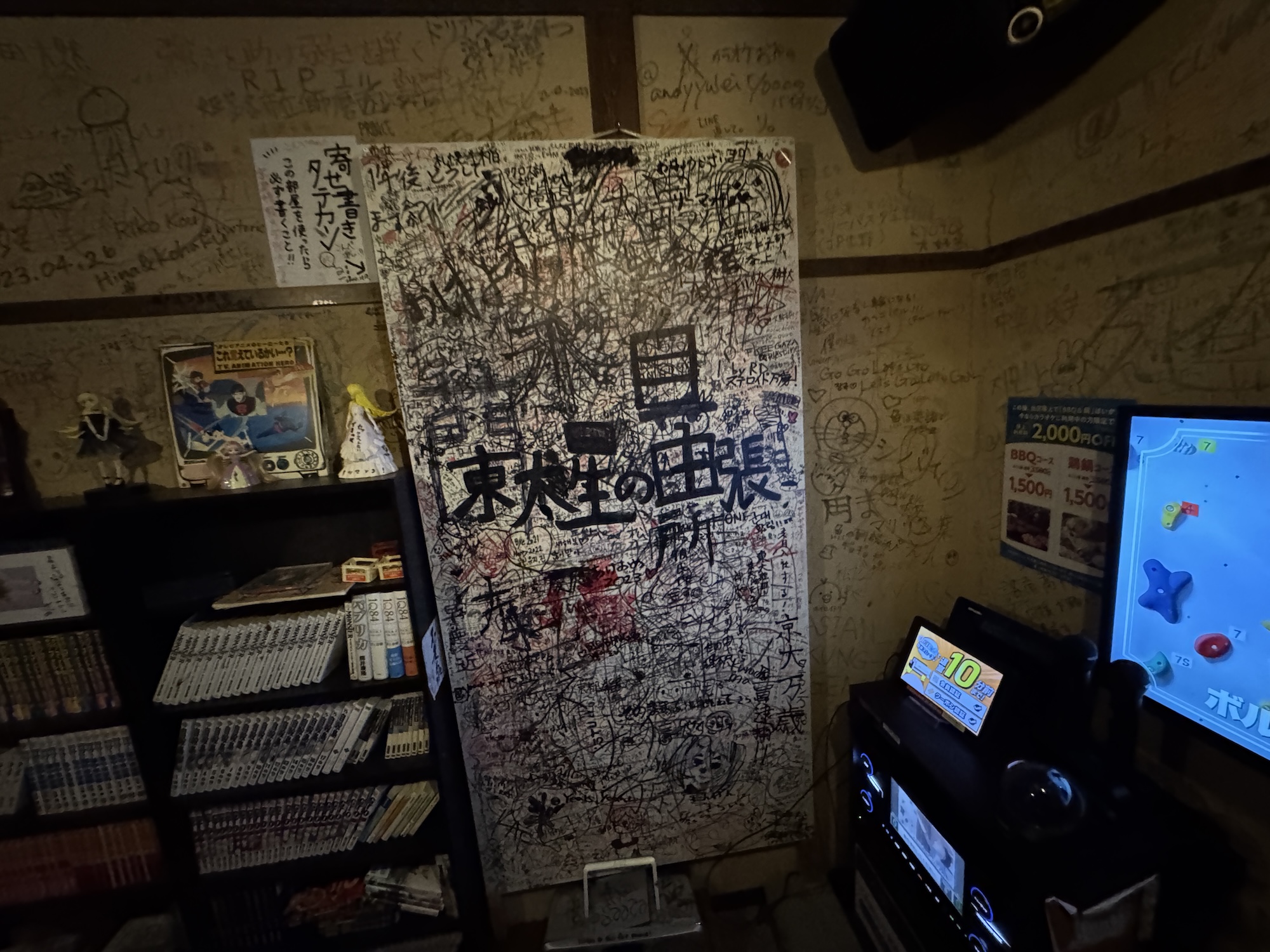 ひたすらに寄せ書きを眺め、ふと振り返るとカラオケ機器が設置されていた。完全に忘れていたけどここはあくまでカラオケルームなのである。