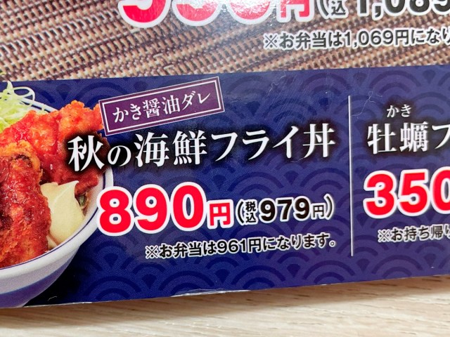下の画像は2022年10月に発売された『秋の海鮮フライ定食』だ。よ~くご覧あれ。