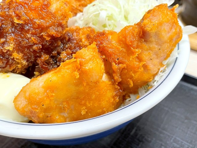 【困惑】かつや、満を持して新商品『海老マヨとチキンカツの合い盛り丼』を発売するもエビフライにしか見えない