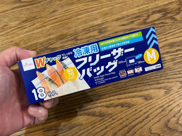 ダイソー フリーザーバッグ 冷凍用 Mサイズ 18枚(110円)