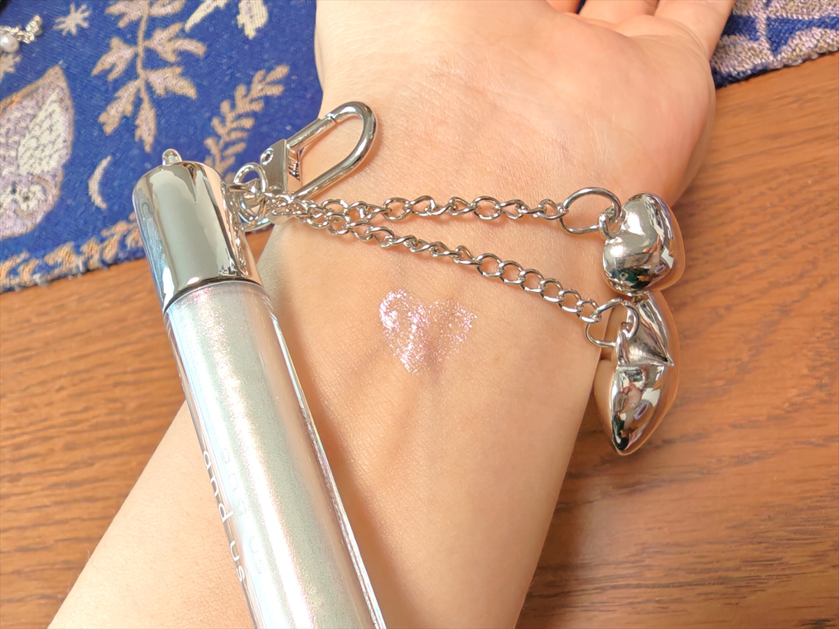 乾くとこすっても消えにくく、オーロラっぽいラメがキラキラと光を反射してキュート。使い心地的には若い女の子の方が似合いそうだけど、シルバーのハート型チャームがオシャレで気に入っている。