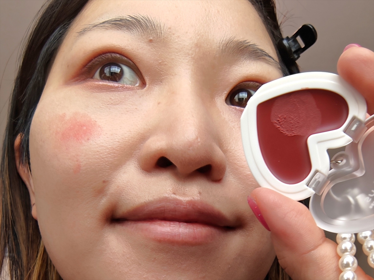 ▼チークはフワッとした質感で淡く発色。最近よく見る韓国系のクリームチークに似ているかも!?