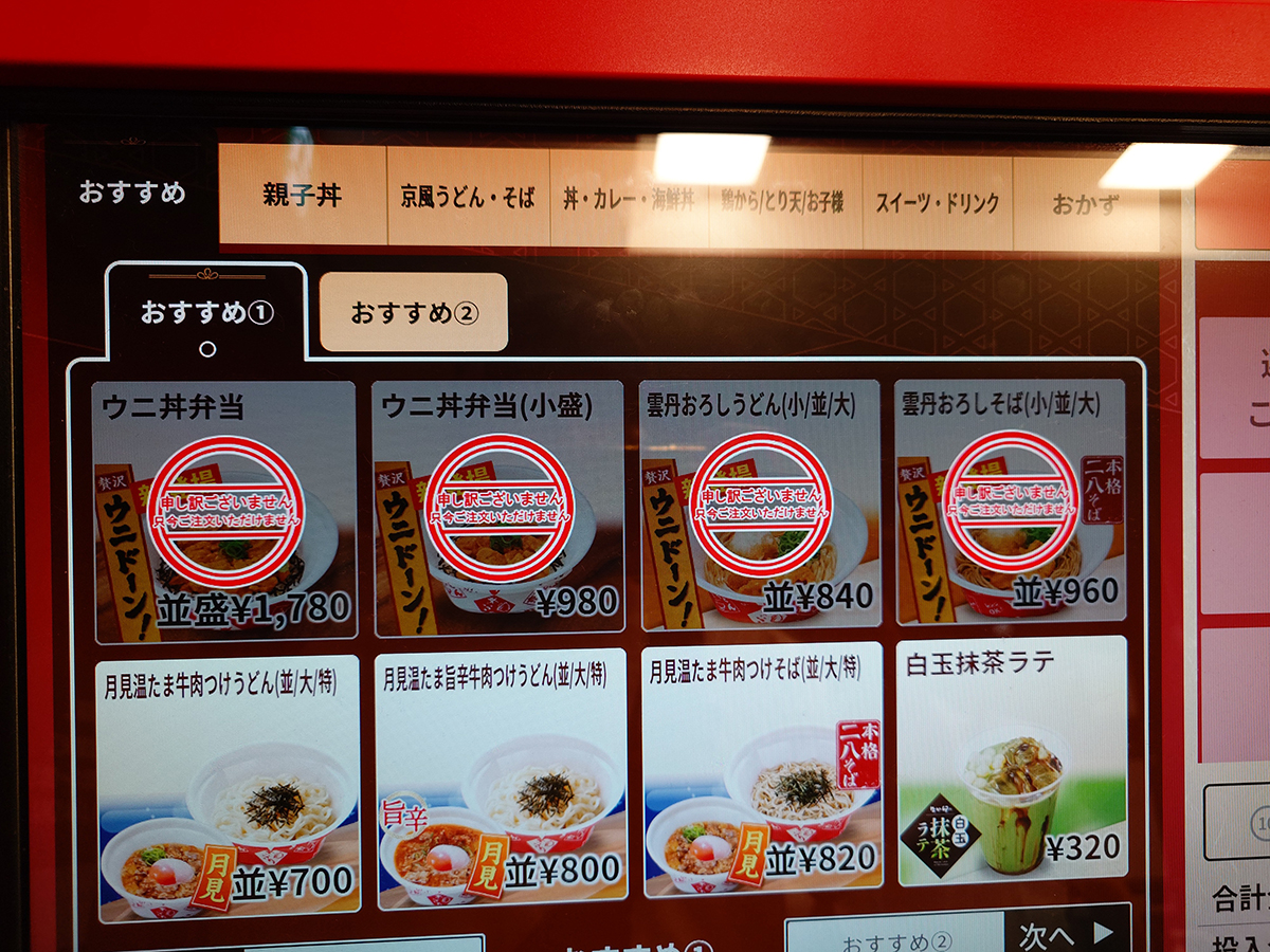 早すぎるだろ!! いや、確かに混んではいるが、初日からこんな爆速でウニだけ消えるとは思っていなかった。他のメニューと比べて、けっこう高いほうだぞ?