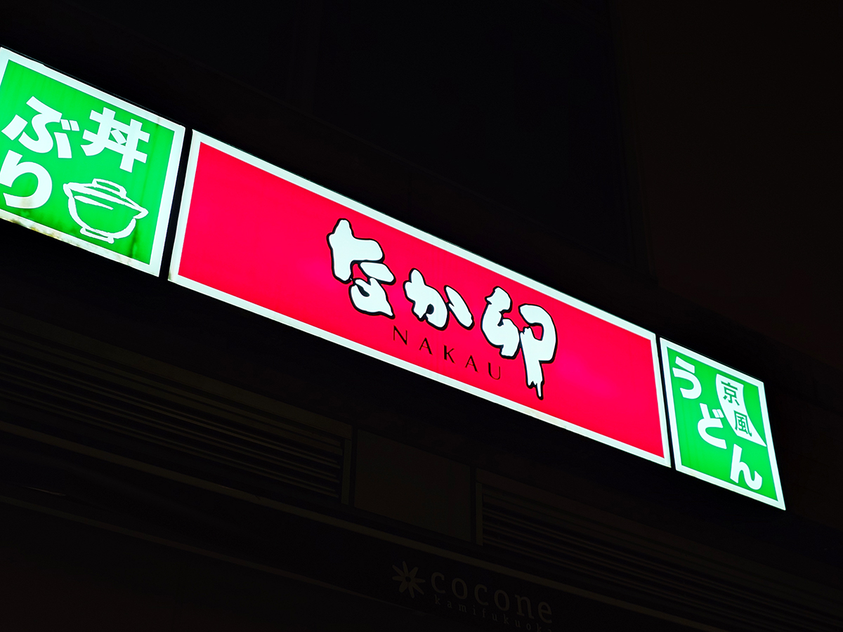 ということで、初日の夜に最寄りの なか卯へ。ちょうど夕食時で、店内は混んでいる。テイクアウト待ちも結構いるぞ。ウニ丼っぽいのを食べてる者もいる。