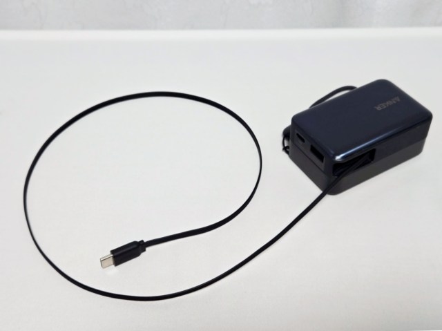 大容量で高出力、そこに程良い長さのケーブルが内蔵されているときたら、そりゃあ使いやすいわ。ケーブルが壊れたらアウトというリスクはあるが、2万回以上の折り曲げに耐えられる高耐久設計とのことで、安心して使えそうだ。