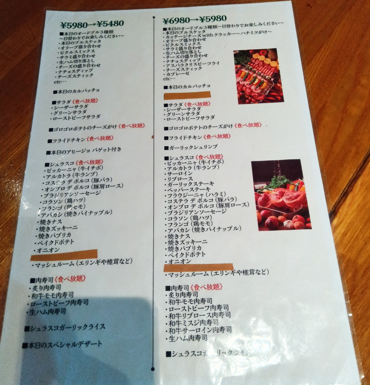 あと、もう1点気になったのはメニューについて。食べログの公式のメニュー記載によると、税込2980円からと3500円より安い食べ放題コースが記載されている。期間限定で3500円より安いコースみたいなのが存在していたりするんだろうか。