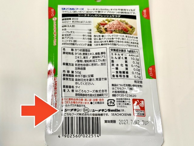 内容量は50gパウチ×6袋入り。普段買っているスリムタイプのツナ缶が1個70g入りだから、一段階小さい。