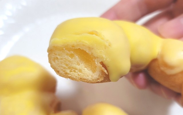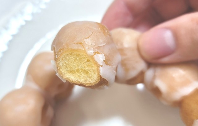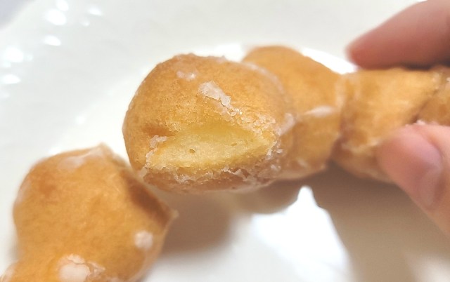 改めて口に入れると、食感は「モッチリング」に近い。いや、「モッチリング」が「ポン・デ・リング」に近いのだが、ともかく弾力よりもしっとり感に寄っている。「ポン・デ・リングっぽいもの」をここまで連続で食べたあとだと、食感という観点ではさすがに少し霞む。