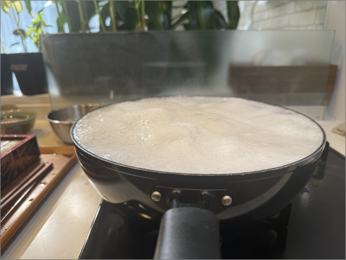 ▼いい感じのそば湯がとれた。でも二八や十割のそば湯の方がトロトロしてて美味しいかも?