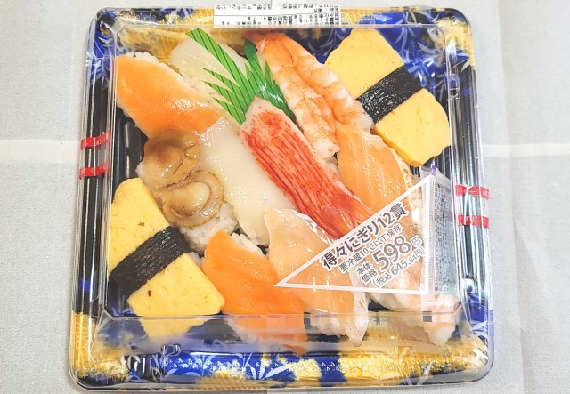 実はこの「得々にぎり」は昨年も販売されていたらしく、その際は恐ろしいことに14貫入りだったそうである。「2貫減ってしまったのか」という落胆を、「今年は少し冷静になってくれたのか」という安堵が上回るから不思議である。