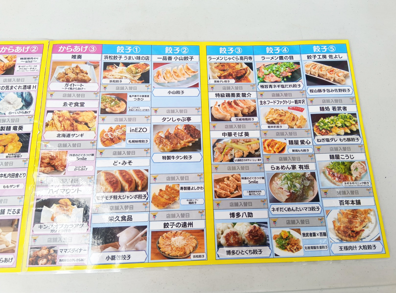 さて置き、餃子全部食べてもまだ全然お腹に余裕があるので、からあげも全部食べてみることに。プラス2100円分チケットを追加。からあげで出店している『特濃のどぐろつけ麺smile』『自家製麺 竜葵』『自家製麺 伊藤&うどん屋清』の3店で交換した。