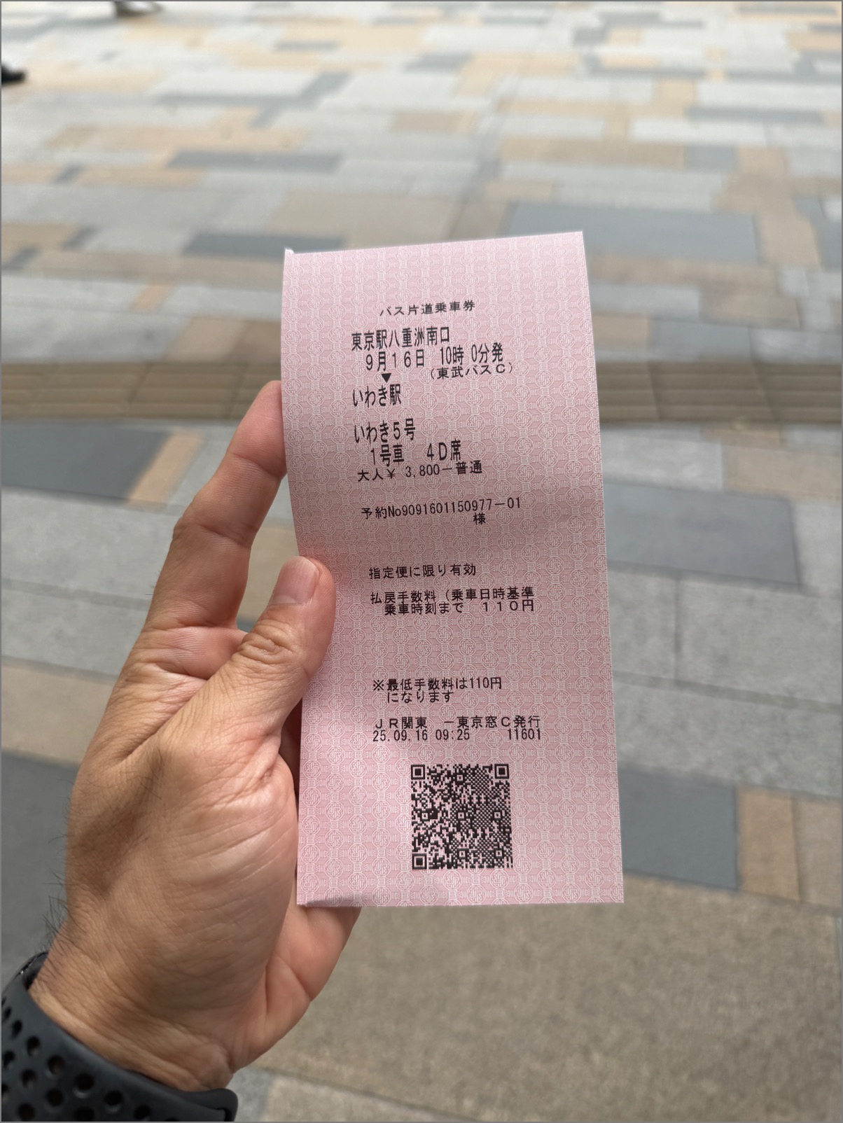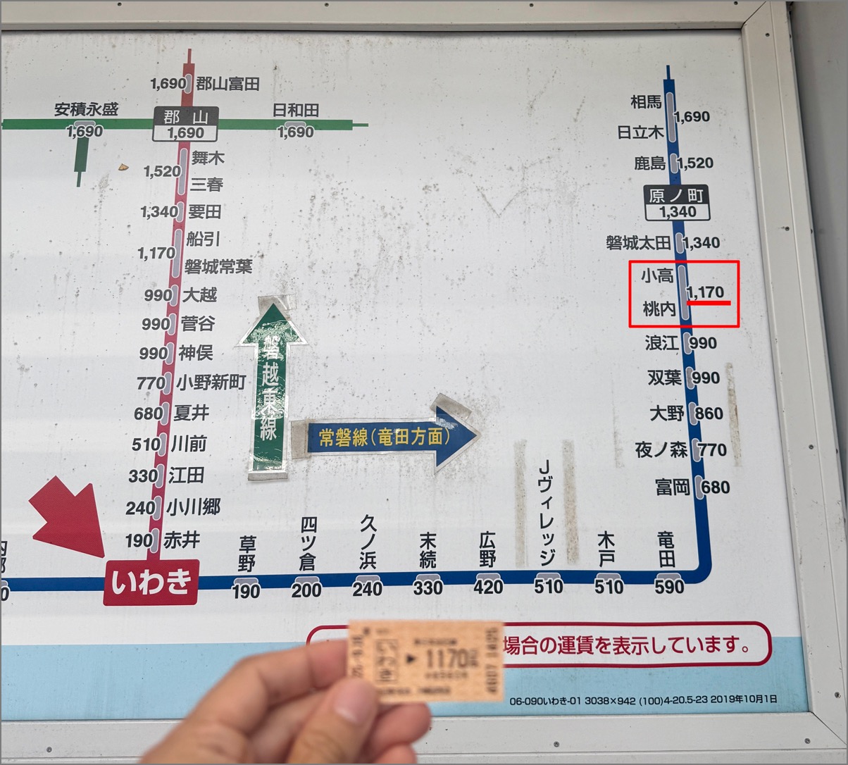 仙台よりだいぶ手前の「いわき駅(福島県いわき市)」までのバスチケットを購入。価格は3800円。これにて残りの交通費は1200円となった。
