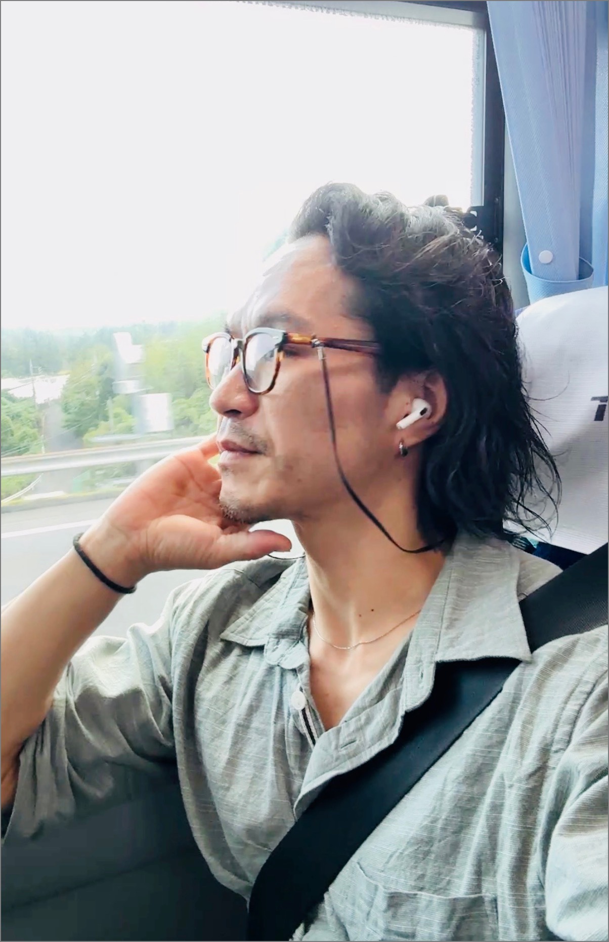 12時になっても、まだまだバスは北方面に爆走中。位置的には北茨城市あたり。ここで佐藤とビデオチャットを繋いでみると、