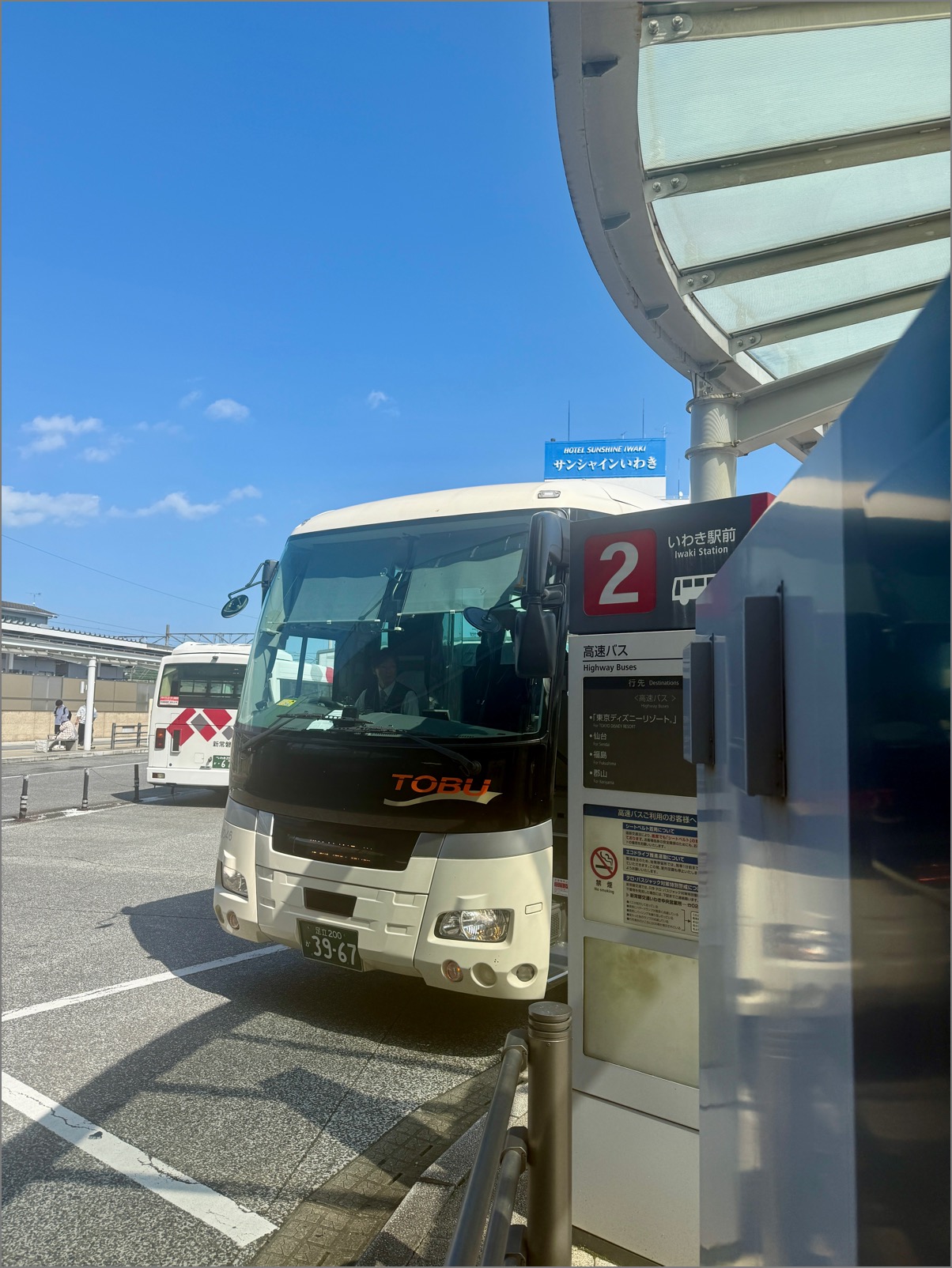 東京駅出発から約3時間後の12時56分。バスはようやく「いわき駅」に到着!