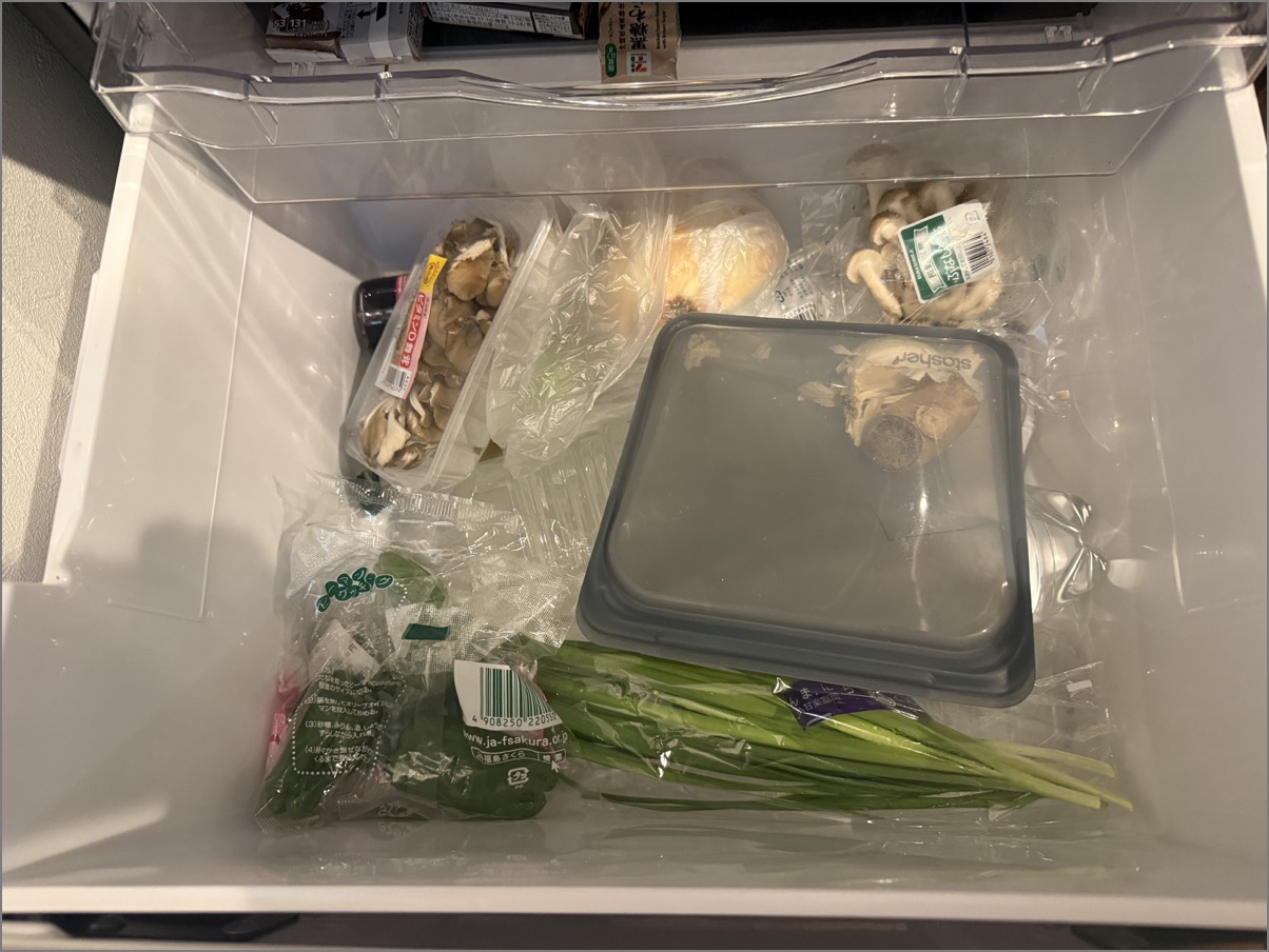 まずは、冷蔵庫にある野菜や肉などの具材をメモしておく。賞味期限が近かったりの「必ず使う食材」があれば、それも、その旨をメモしておく。