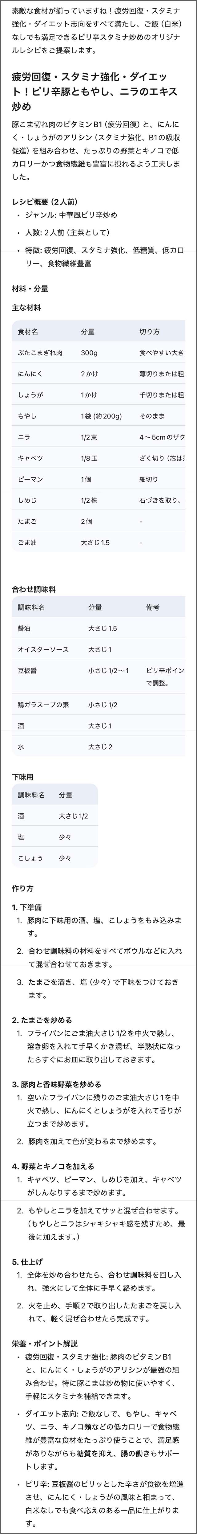 生成AIに『減量も意識した疲労回復&スタミナ強化のレシピ』を「パクり禁止。完全オリジナルで」と聞いたら最強のオリジナル料理を出してきた!→ しかも効果がヤバイ!