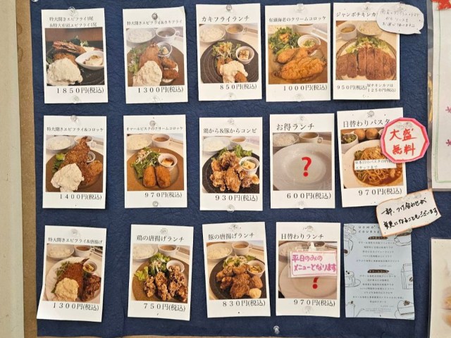 特大エビフライ定食に、オマール海老のクリームコロッケ定食などなど美味しそうなラインナップだ。