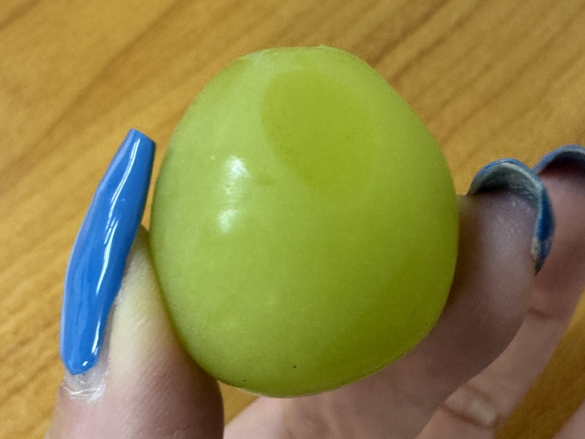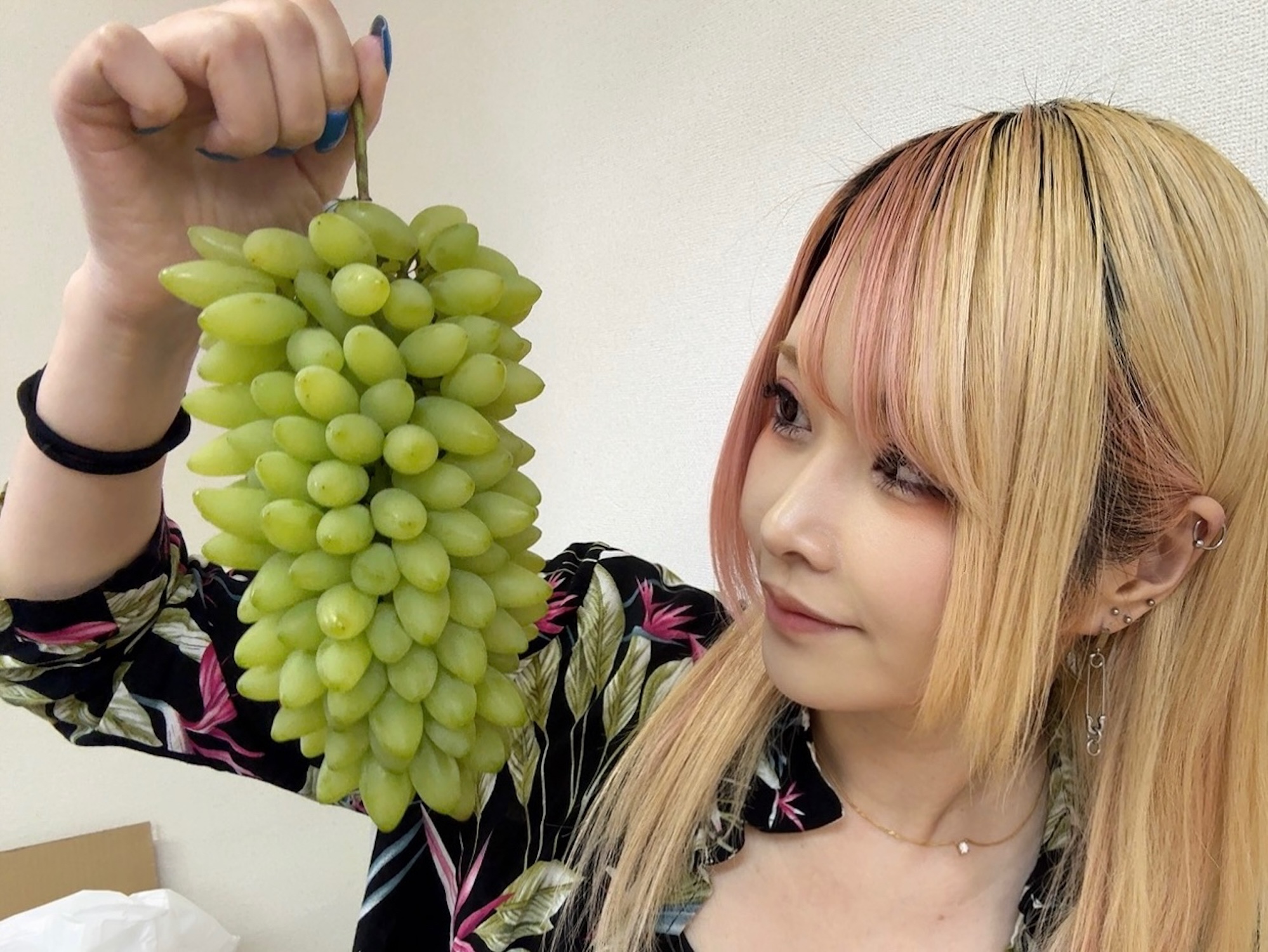 御花畑「うん、おいしい。皮のエグみが若干気になるけど、小粒で甘すぎないからパクパクいけるのがイイ。ただ見た目が……集合体恐怖症の人には厳しいかもしれない? シャインマスカットとは別モノだから単純に比較するのが難しいけど、90点ってところかな」