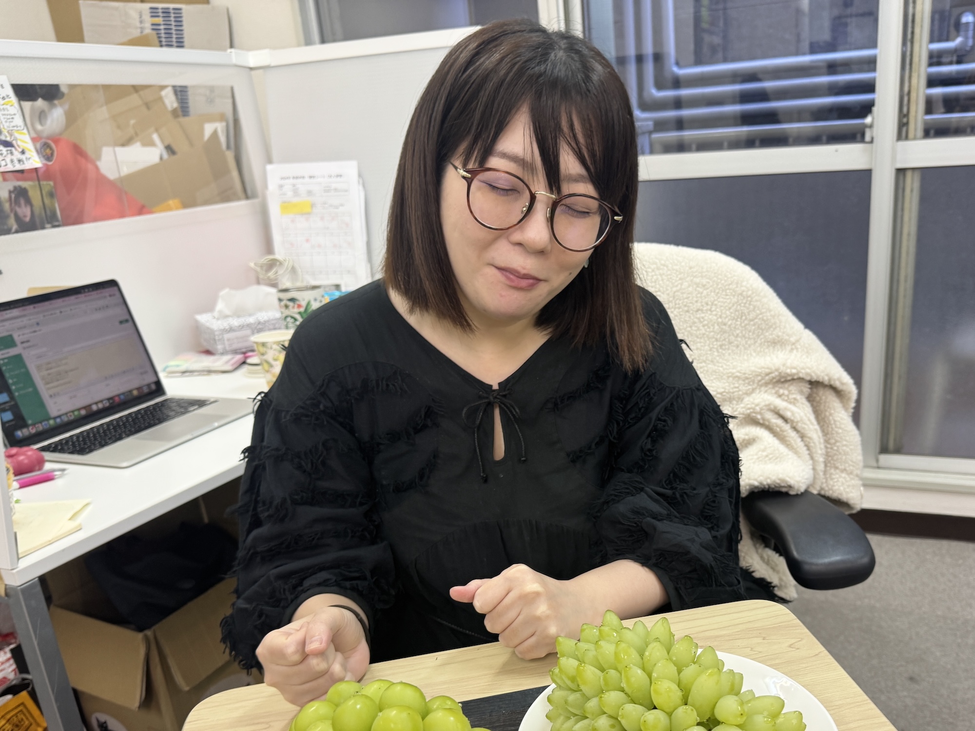 えっ、ありがとうw 「おいしい」「うまい」を連発する御花畑記者。自分の目利き能力が評価されたことを、私は非常に嬉しく感じた。あくまで個人的な好みだが、シャインマスカットは “大粒で皮が厚くて緑色が濃いもの” を選ぶとアタリを引く可能性が高いと思う。