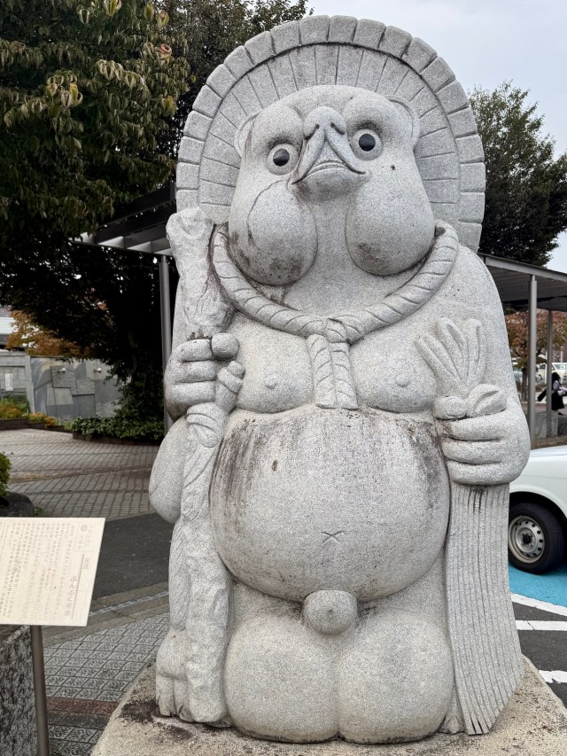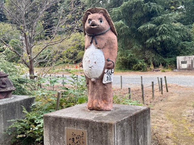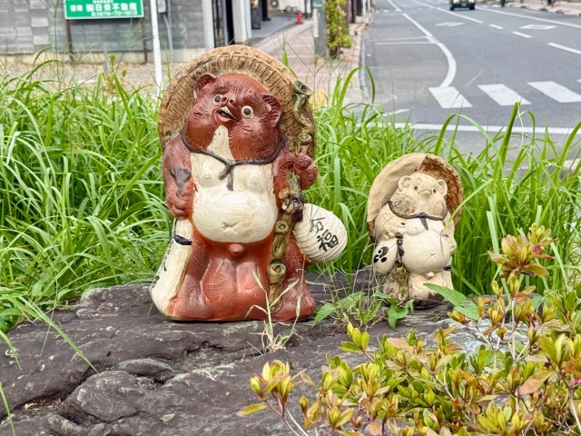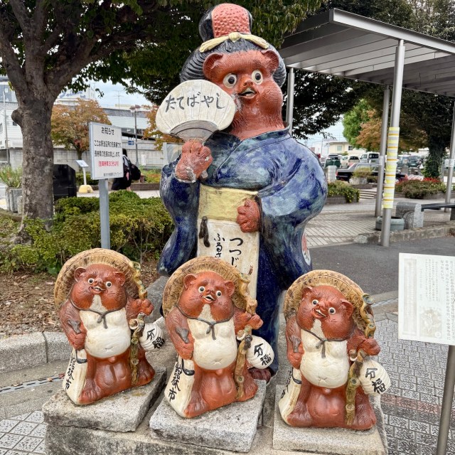 さて、市内では駅前や市役所、商店の店先などにやたらとタヌキ像が飾られている。