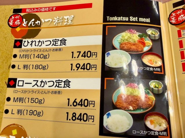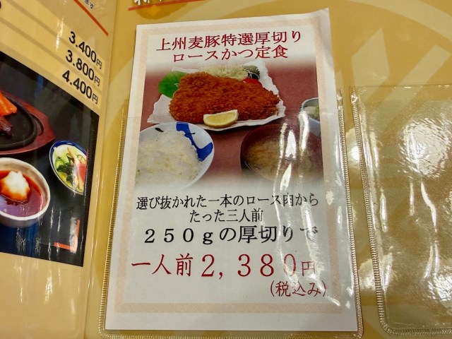 私が選んだのは限定メニューの「上州麦豚特選厚切りロースかつ定食(2380円)」、古沢は王道の「ヒレかつ定食(1740円)」をチョイスした。上州麦豚は赤身が豊かできめ細かく、あっさりとした上品な風味が特徴とのこと。