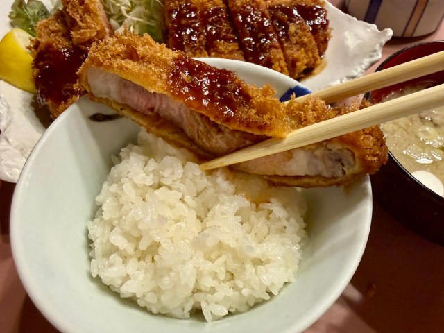 しかも店員さんに「頑張ってね」と言われるほどの衝撃ボリューム。それでいて最後まで飽きずに食べられるのはヤバい。このとんかつを食べるためだけに館林に来てもいいだろう。