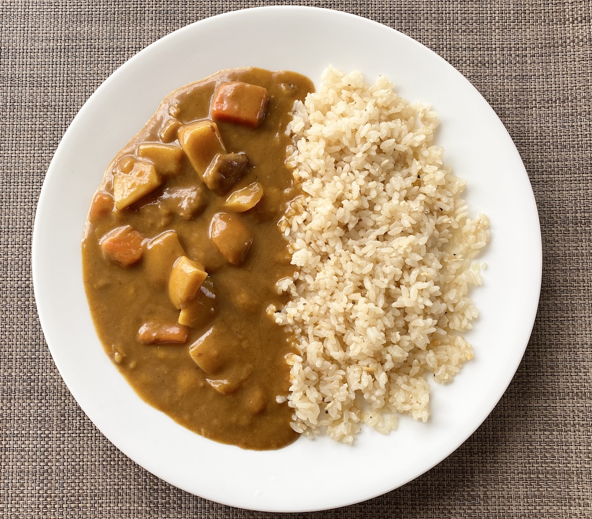 ライス、カレーともにレンチンしただけなのにまぁウマい。普段ガーリックライスを食べていないから余計にそう思ったのかもだが、カレーのよさを上手に引き出しているようにも感じた。