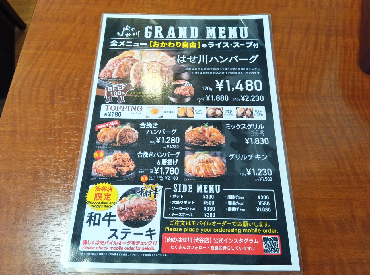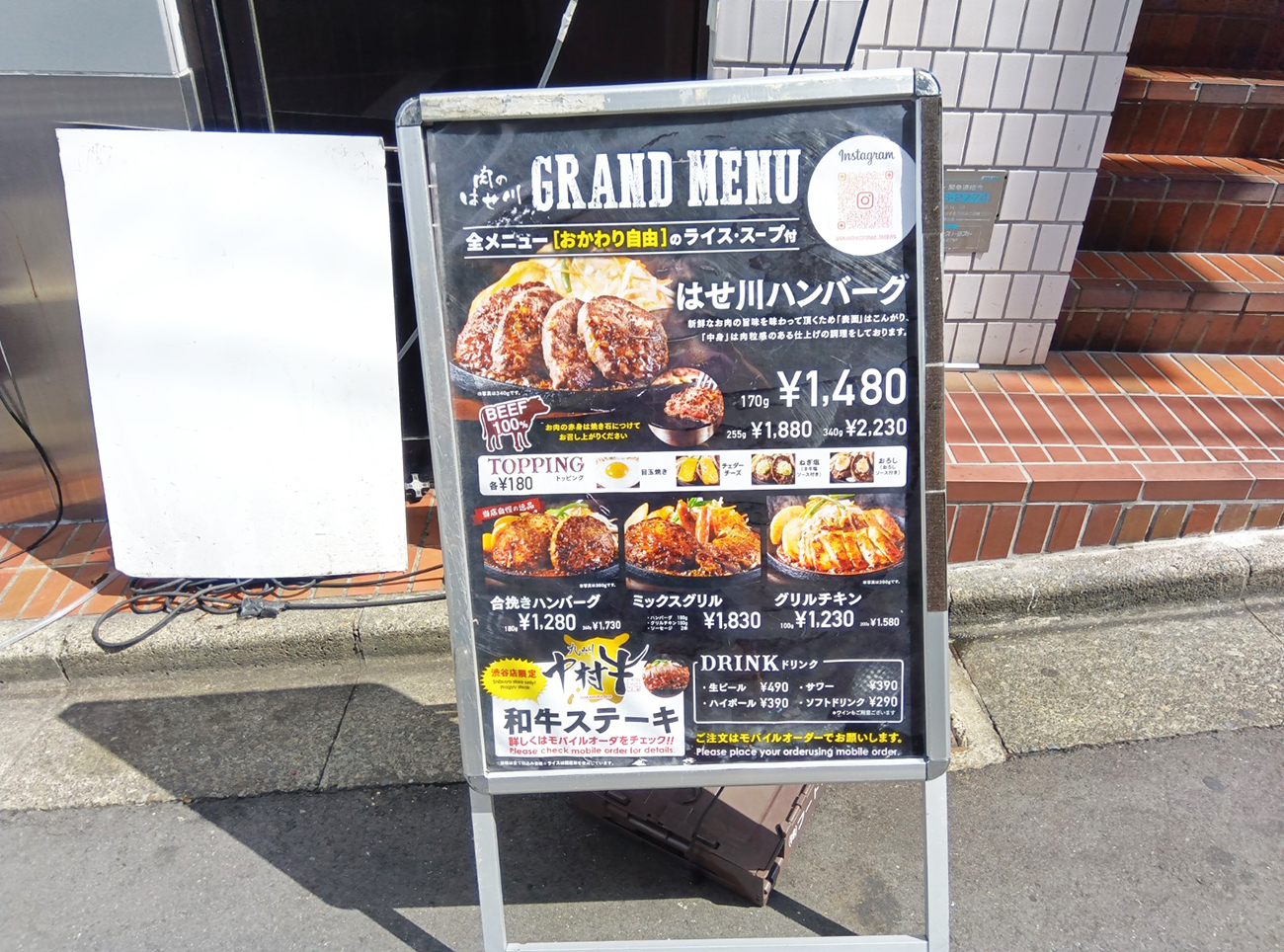 そんな渋谷を歩いていると、路地裏にあるビルの前の看板にこう書かれていた。「合挽きハンバーグ180g1280円」と。しかも、ライススープはおかわり自由らしい。今の渋谷ハンバーグ相場からするとまあ良いんじゃないか。そこで店の実態を確認すべく入店してみることにした。