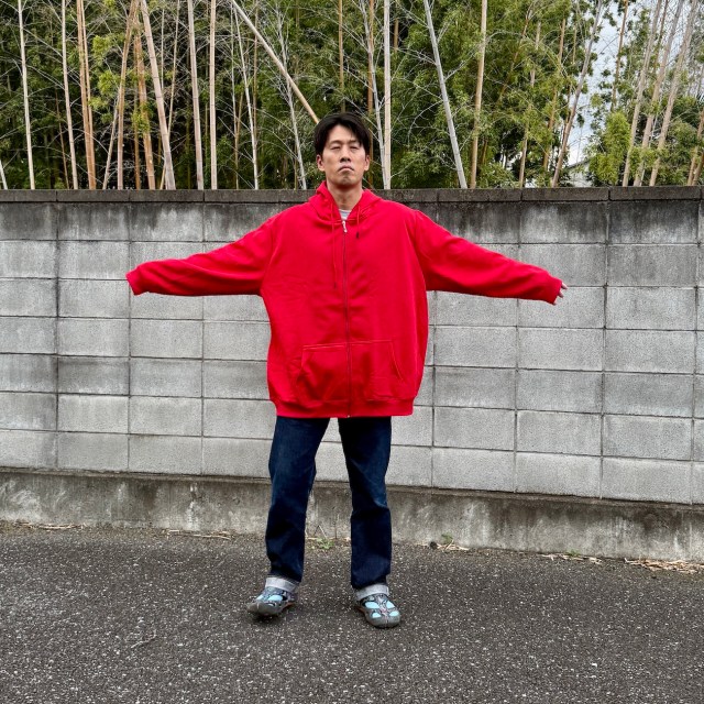 私は180センチ、80キロで12XLを着たが、余裕どころかパーカーに食われている状態。ただ実際に大きめの服を探している人にとっては発見かもしれない。量販店等で手に入る大きなサイズとはケタ違いの巨大サイズが購入できるだろう。