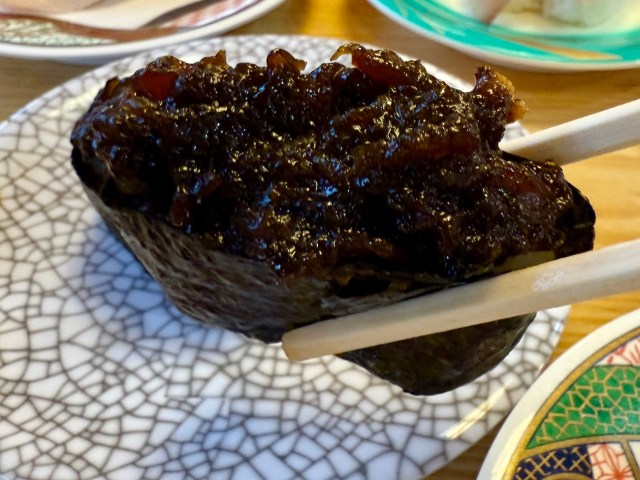 言うまでもなくネタは新鮮。結論から言えば、全部アタリである。なかでもハートを撃ち抜かれたのは、鮭の身にイクラをのせた「おやこ」。プチプチ食感と濃厚な旨味が一口で広がり、激ウマ以外の感想が思いつかない。