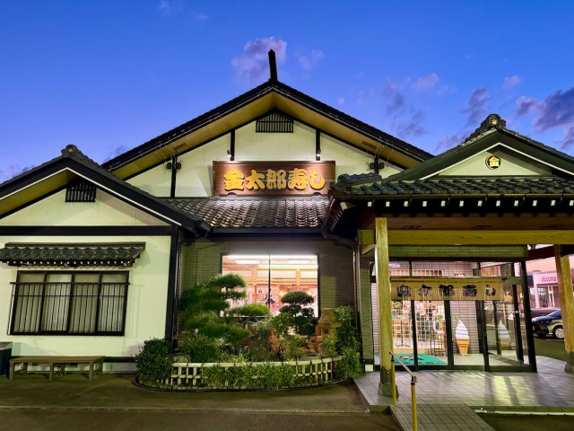 やってきたのは「金太郎寿し 新斎店」。地元では知らない人がいないほどの超有名店だ。後日、地元在住の知人に聞いたところ「庄内エリアで寿司を食べるならココ」と即答。地元民に愛される回転寿司である。