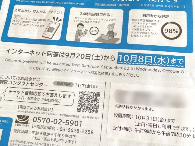 ▼インターネット回答は10月8日(水)までとなっている。忘れないように!