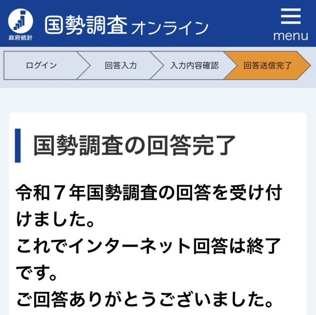 そんなこんなで回答終了。かかった時間は5分程度といったところか。思っていた以上に簡単に終わってしまった。紙で提出するよりも間違いなく楽なので、インターネット回答が断固オススメだ!