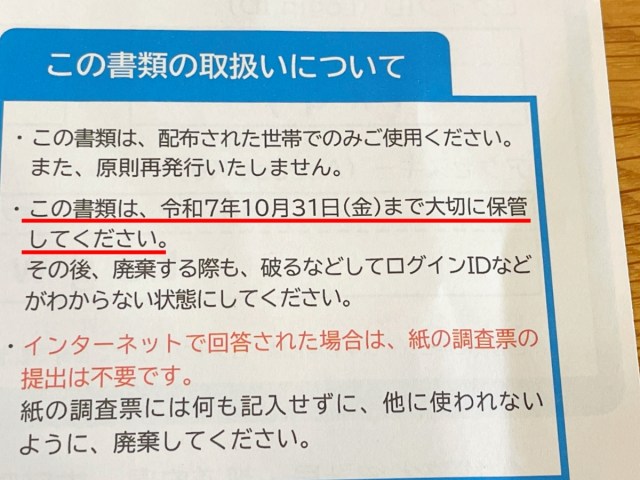 「この書類は、令和7年10月31日(金)まで大切に保管してください」