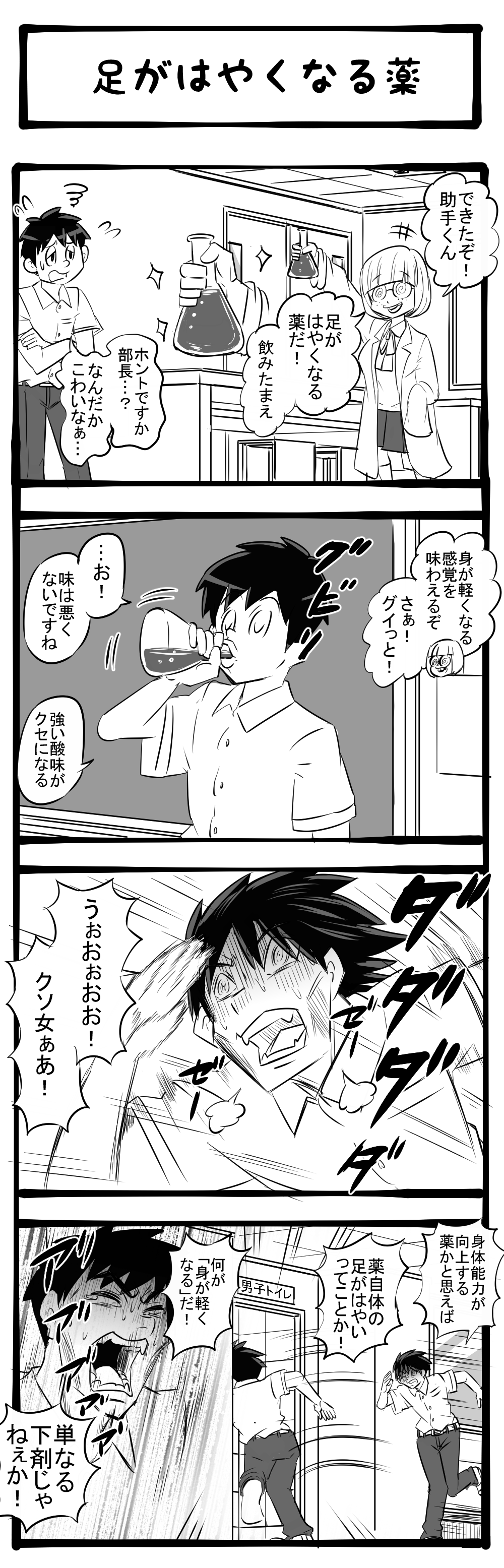 なんかお腹が…! 実験台になった後輩部員! 四コマサボタージュBYD第205回「足がはやくなる薬」
