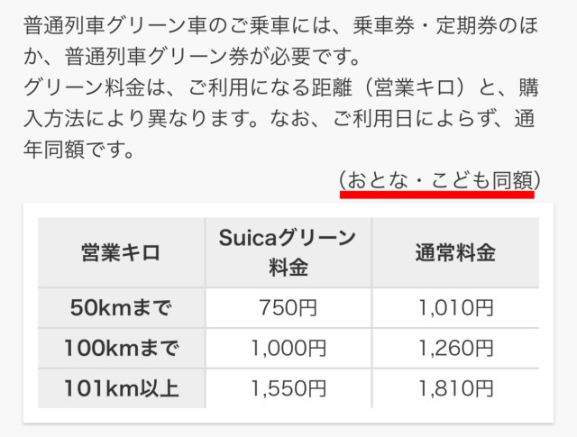 先ほど、普通列車グリーン車の料金案内に「おとな・こども同額」と書いてあったのはそのためだ。