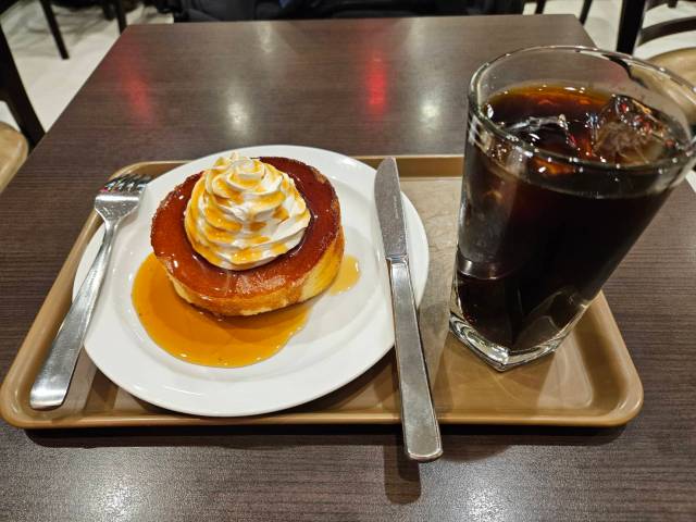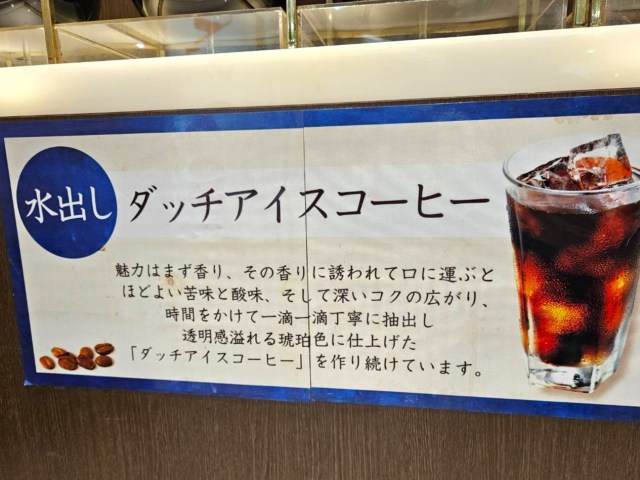 さて、今回は看板メニュー「ダッチアイスコーヒー」と、気になった「窯焼きホットケーキホイップ」をセット(税込710円)で注文してみた。