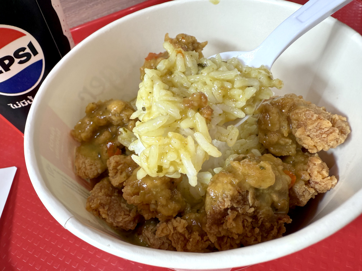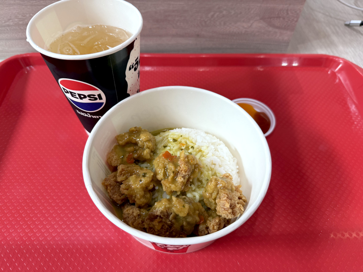 日本でも実際に試してみるかはさておき、軽く小腹を満たせるタイのケンタッキー限定「チキングリーンカレー」は有能なメニューなのではないだろうか? 想像は超えてこないが、約束された味であることは間違いない。