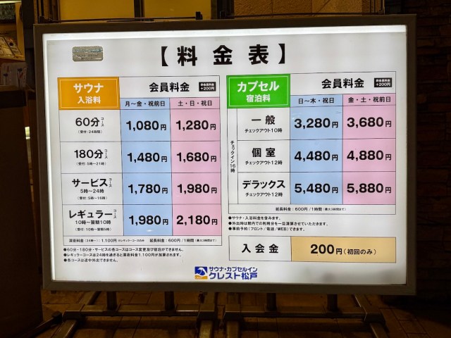 また、24時までのレギュラーコース利用でも深夜料金を追加すれば翌朝10時まで滞在可能とのこと。終電を逃した時だけでなく、たまにはじっくりサウナを満喫したいという時にもありがたいシステムである。リーズナブルなので覚えておくと良いだろう。