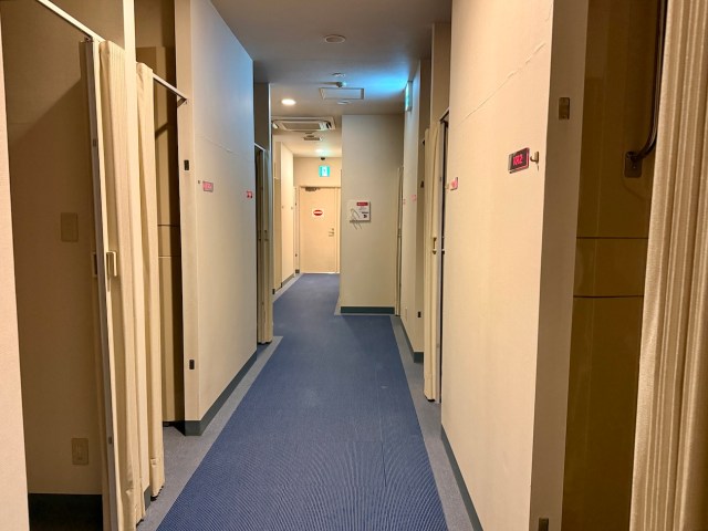 さて、チェックインを済ませたら個室カプセルへ。部屋はアコーディオンカーテンで仕切られているだけなので鍵はかけられない。荷物・貴重品はロッカーに入れておく必要がある。