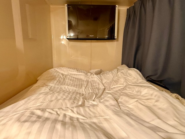 私は疲れていたのか、それとも大浴場でしっかり汗を流した後だったからなのか、ベッドに横になった瞬間にバタンと就寝。カプセルの広さは十分で寝返りもできるレベルだった。